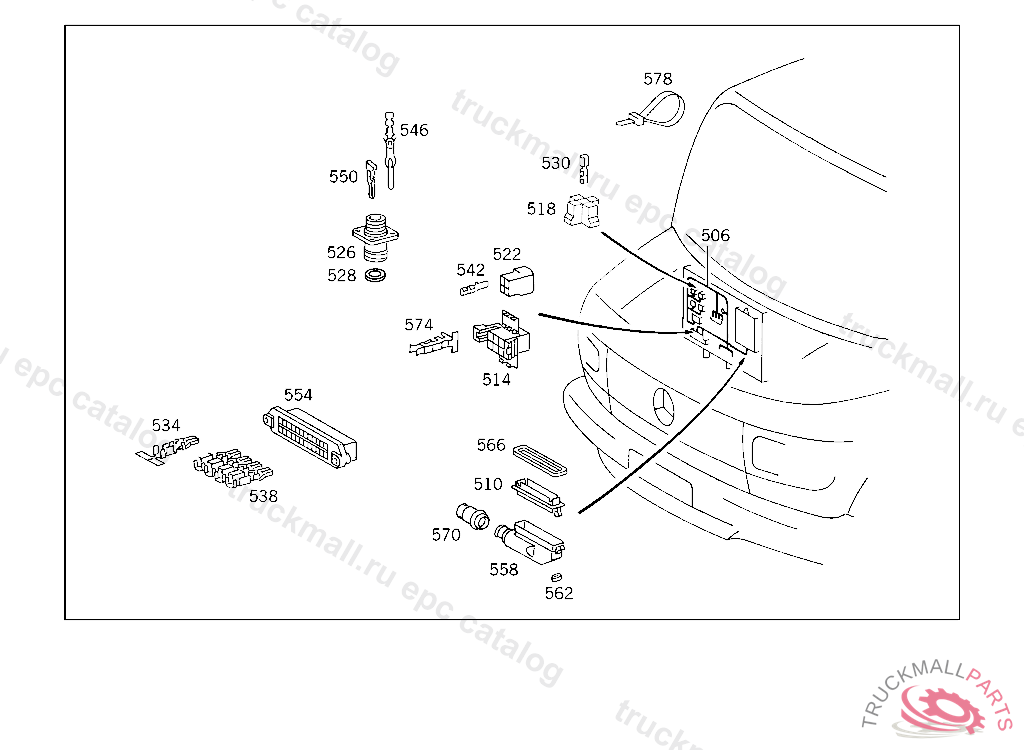 CABLE HARNESS FROM REAR CABLE CONNECTOR TO TAIL LAMP AND TO RIGHT SIDE MARKER LAMP,SB055050