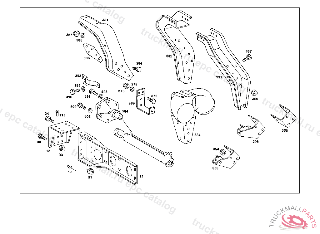 BEARING BRACKET HYDRAULIC CYLINDER, MODEL 416/417 FOR USE WITH MEDIUM-LENGTH MERCEDES-BENZ CAB