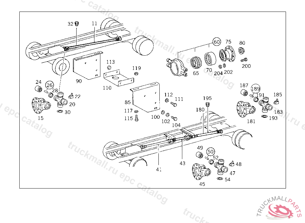 PROPELLER SHAFT , THIS NOTE OF REPLACEMENT APPLIES ONLY TO THE ITEM LISTED OPPOSITE BEARING BUSHING O..D.,57 MM, Replaced By: A3874108904