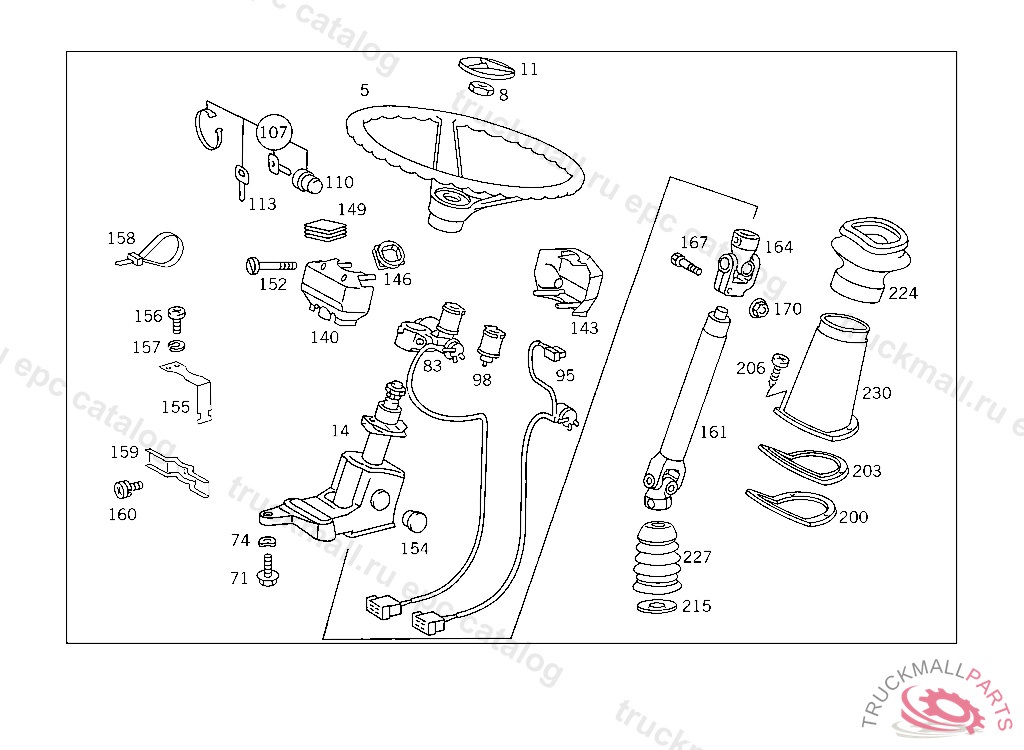 STEERING SHAFTLEMFOERDER, USED WITH SHORT MERCEDES-BENZ CAB
