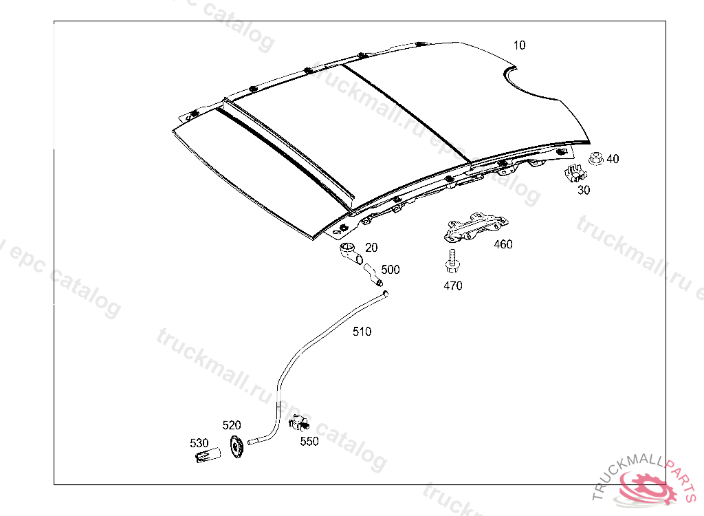 OUTLET PIPE AT PANORAMIC SUNROOF, FRONT