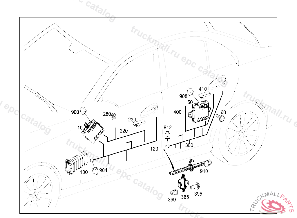 ELECTRICAL WIRING HARNESS RIGHT REAR DOOR, DOOR SEPARATION POINT TO CONTROL UNIT AND CONSUMER, A 34963720091103 L 03546720091031 V 00190320091031 F 43574820091101 R 12680420100430