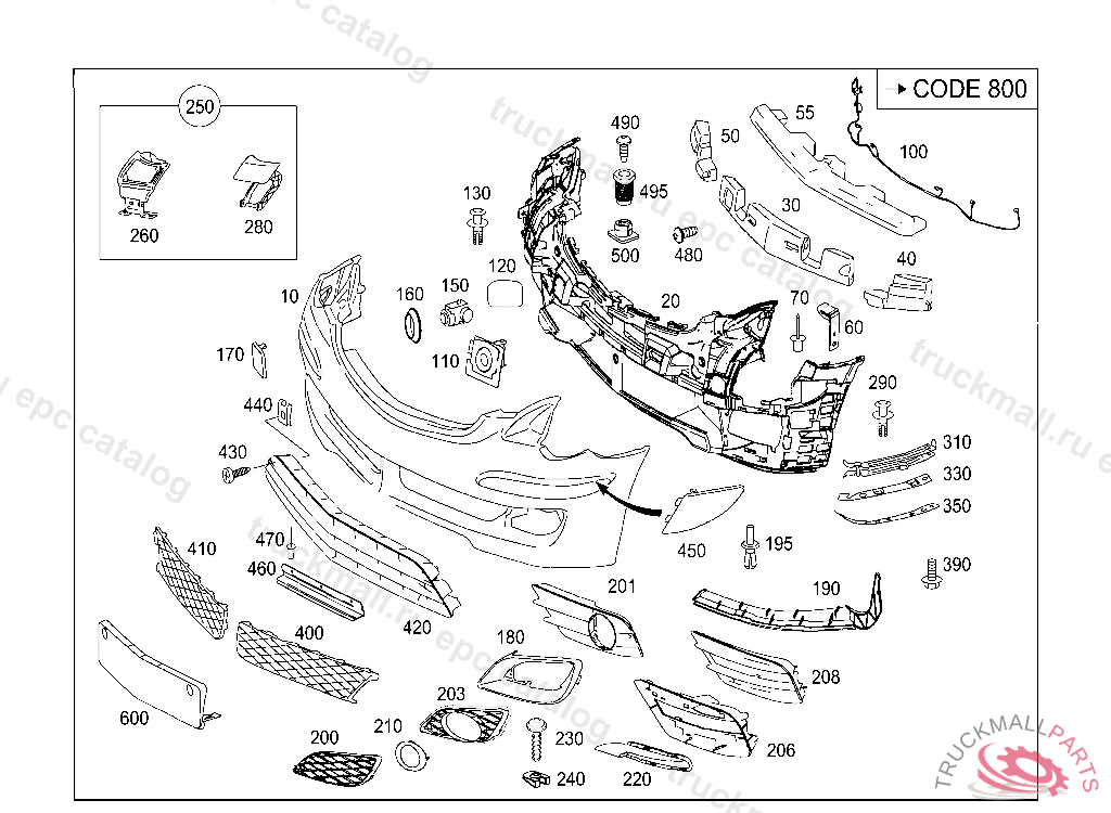 GRILLE LEFT, WITH FRONT FOG LAMP, A 04493220061002807 A 11496520100722801