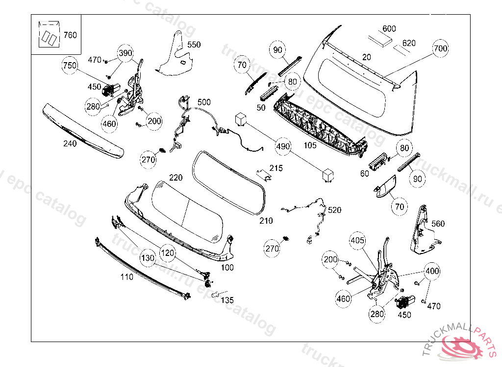 MOUNTING KIT REAR WINDOW AND ROOF CASSETTE AT SOFT TOP SUPPORT