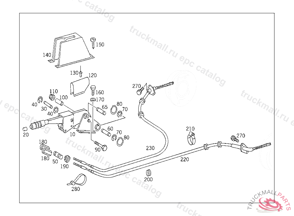 BRAKE CABLE RIGHT DB,1960 MM, FROM AXLE K 005108