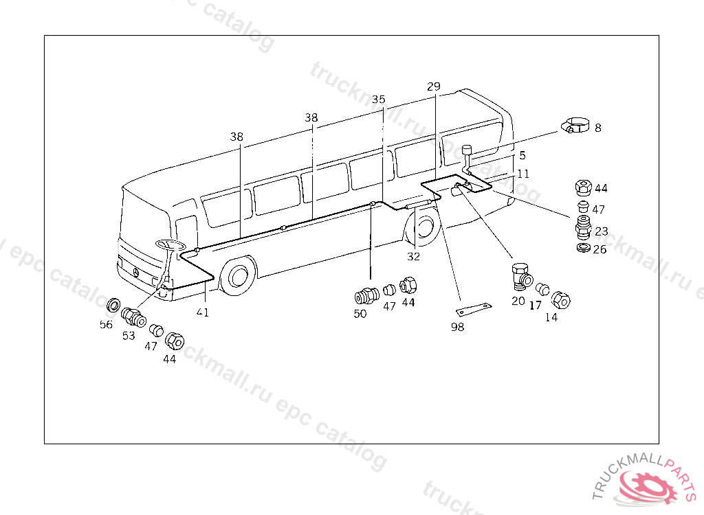 LINE FROM POWER STEERING PUMP TO HOSE 555 MM, WITH MERCEDES-BENZ BODY FROM IDENT NO. 048589,LESS MERCEDES-BENZ BODY FROM IDENT NO. 048565