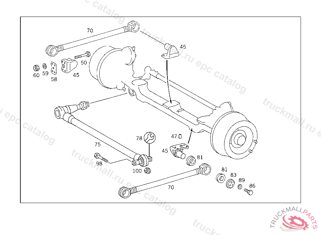 SCREW LONGITUDINAL CONTROL ARM TO BEARING BODY AND TO REAR AXLE