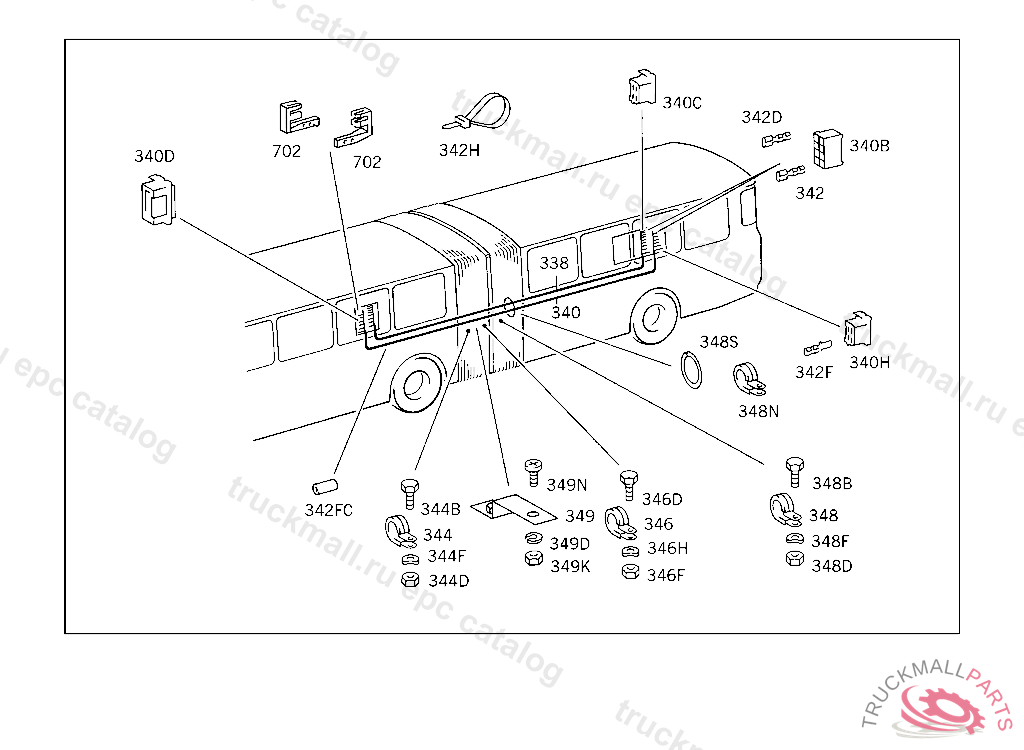 CABLE HARNESS TO REAR CARRIAGE I, FROM IDENT NO. 007745 ALSO INSTALLED ON 007702022792