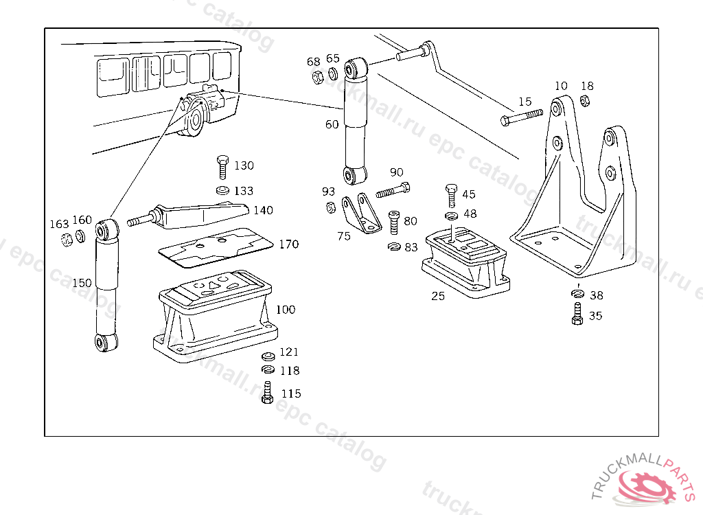 BEARING BRACKET ENGINE SHOCK ABSORBER, 000 043918 ALSO INSTALLED ON 040286,040320 001 043700 051 10/20 043700 051 50/60 043494 050,055 NOT FOR USE WITH MERCEDES-BENZ BODY 043700 050 FOR USE WITH MERCEDES-BENZ BODY 043918 055 FOR USE WITH MERCEDES-BENZ BODY 044150