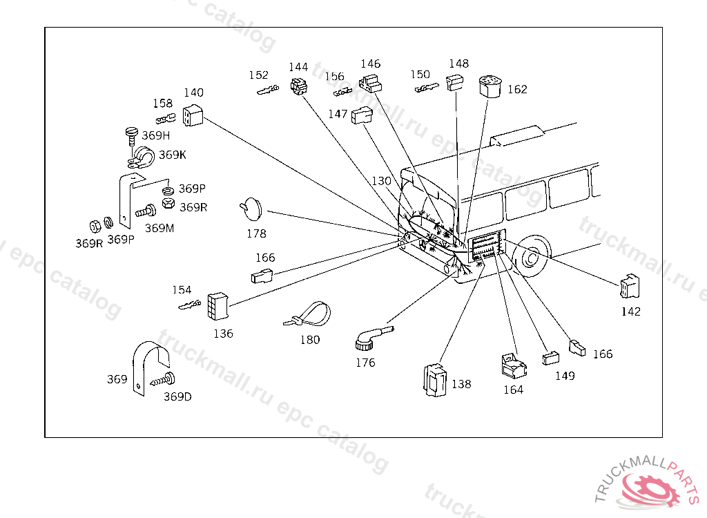 PIN BUSHING HOUSING. PLUG HOUSING FROM CHASSIS/CAB CONNECTION POINT TO TACHOGRAPH