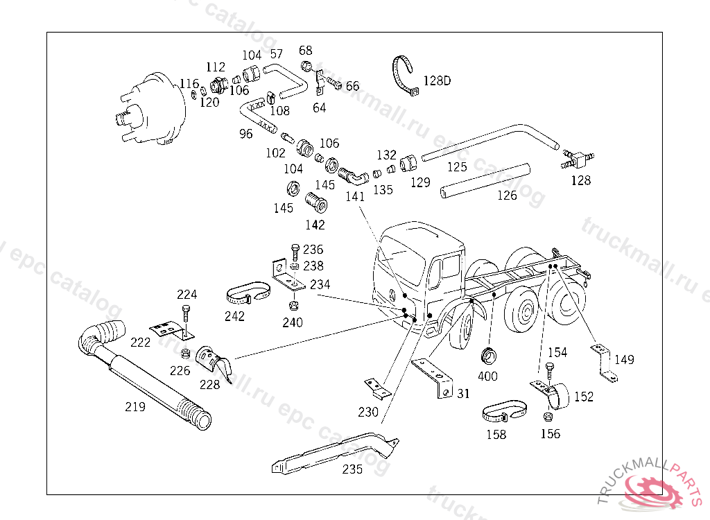 PROTECTIVE TUBE COMPRESSED AIR LINE, 620.415 UP TO CHASSIS 5 014668 620.416 UP TO CHASSIS 5 000515 620.417 UP TO CHASSIS 4 972023