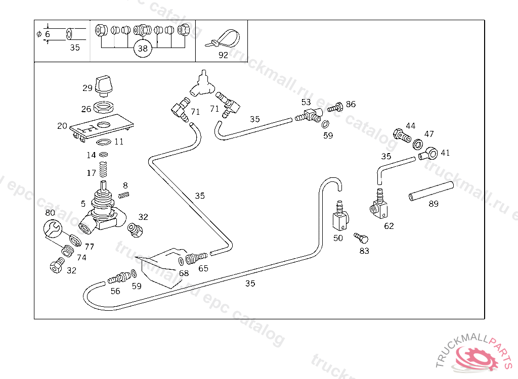 SCREW DELIVERY AND SUCTION LINES TO ENGINE, FRONT M 6X35