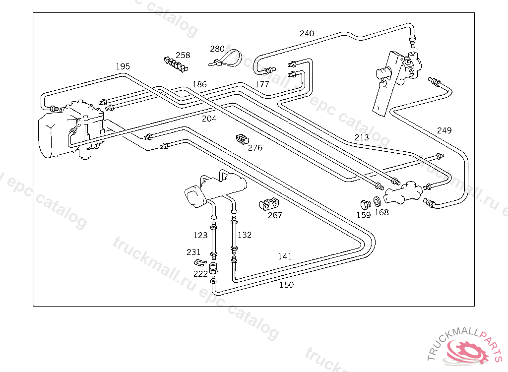 LINE FROM PRESSURE RETAINING VALVE TO RIGHT REAR BRAKE HOSE 3090 MM,P 136599