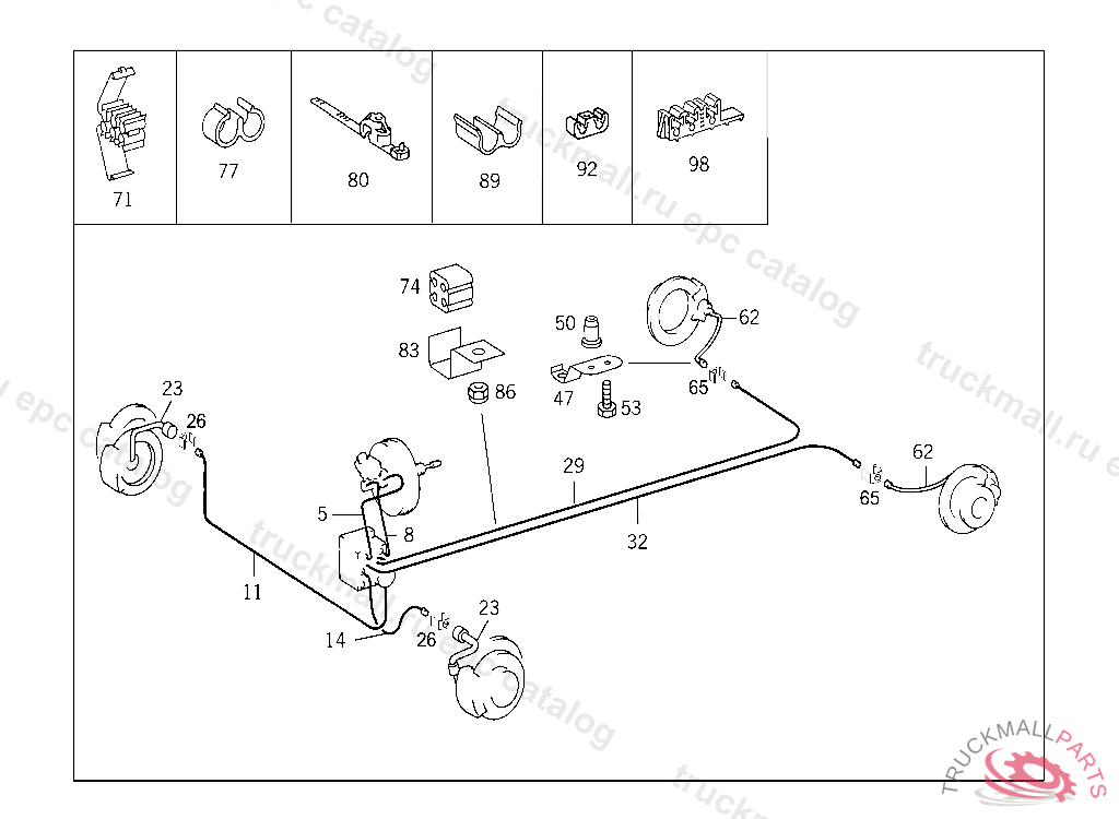 CLAMP CABLE AT BODY, Replaced By: A0009956877