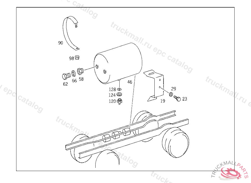 RESERVOIR COMPRESSED AIR 20 L, TO VOSS 232, FOR VEHICLES WITH VOSS 230 CONNECTOR: ADD. MOUNT FITTING "A 004 997 82 72" WITH O-RING "A 000 987 04 46" AND THRUST RING "A 000 997 02 03" TO AIR RESERVOIR