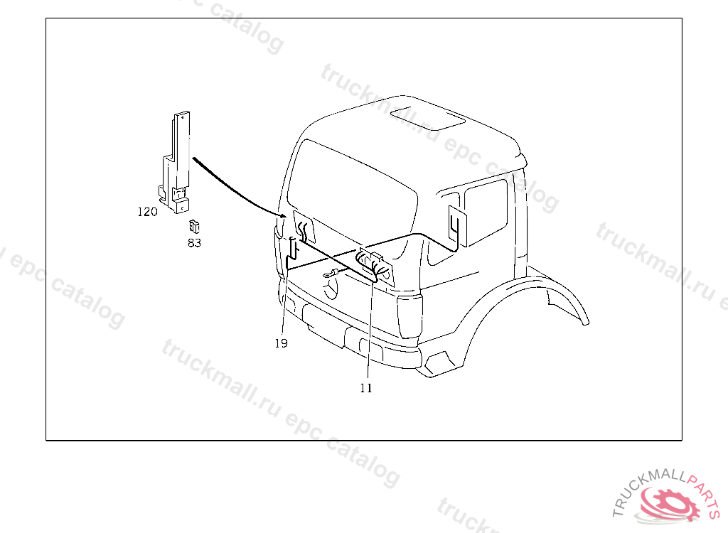ELECTRIC CABLE FROM TRAILING AXLE PLUG-CONNECTION IN ELECTR. COMPARTMENT TO APPARATUS PLATE