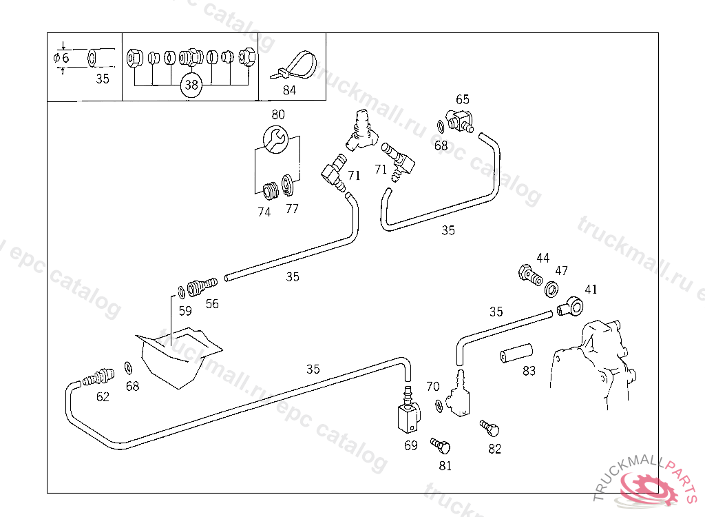 SCREW DELIVERY AND SUCTION LINES TO ENGINE, FRONT M 6X35
