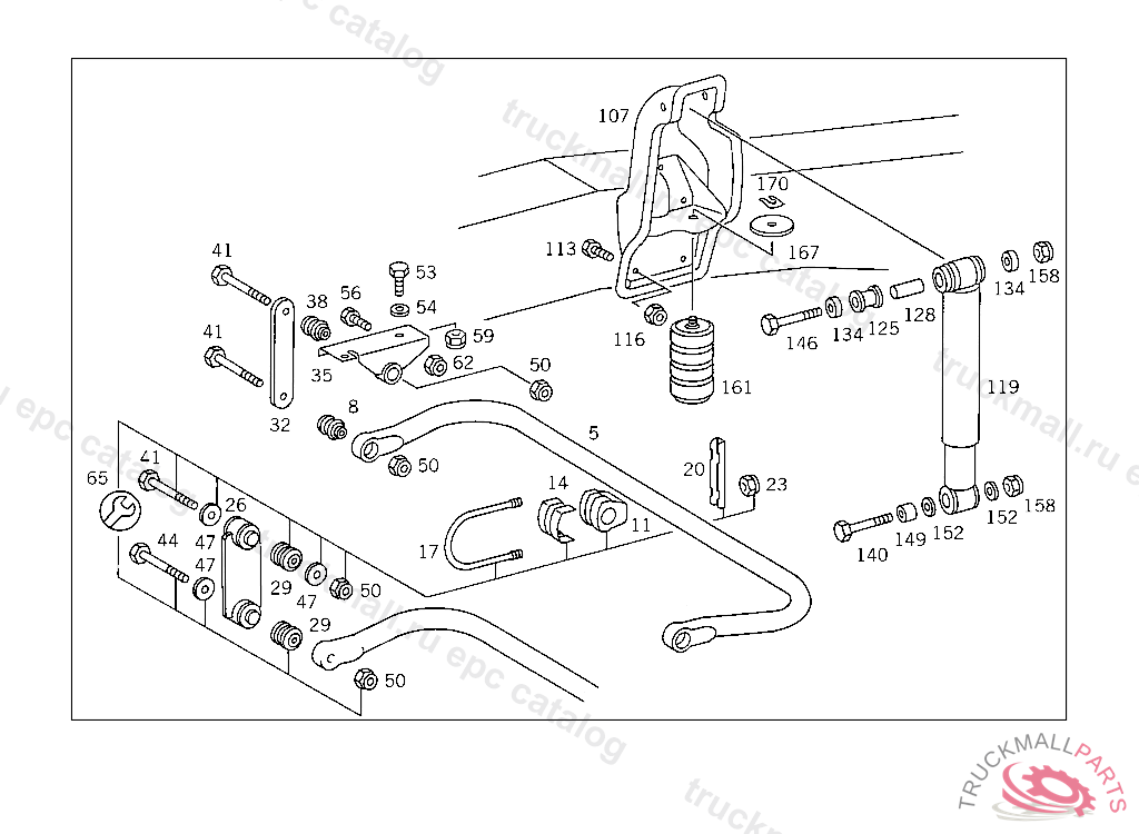 TORSION BAR , TORSION BAR BEARING WITH SINGLE SHACKLE 667.000-099/300-399, 852362 668.000-099/300-399, 848160 669.000-099/300-399, 848160 670.000-099/300-399, 843495, Replaced By: A6673231765, +001A6673203543, +001A6673203643, +004A3093200073, +004A3093260547, +004N000933010129, +004N000960012197, +002N000961012151, +004N913004010008, +006N913004012008