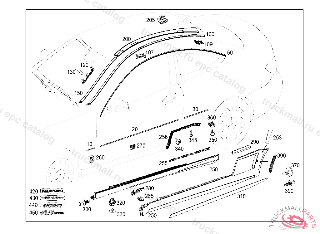 CLIP WATER REPELLENT AT LEFT A-PILLAR, FIRST EXHAUST STOCK OF OLD PARTS UP TO IDENT NO. V 00003220130619, Replaced By: A0039919470