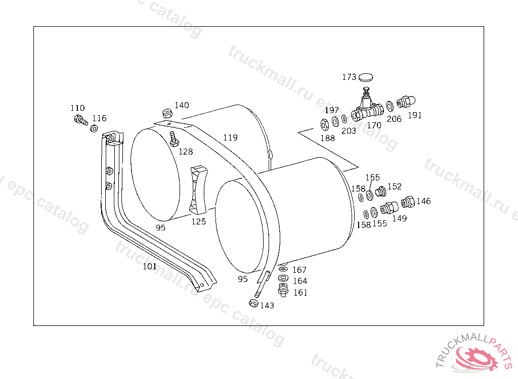 RESERVOIR COMPRESSED AIR 20 L, TO VOSS 232, FOR VEHICLES WITH VOSS 230 CONNECTOR: ADD. MOUNT FITTING "A 004 997 82 72" WITH O-RING "A 000 987 04 46" AND THRUST RING "A 000 997 02 03" TO AIR RESERVOIR
