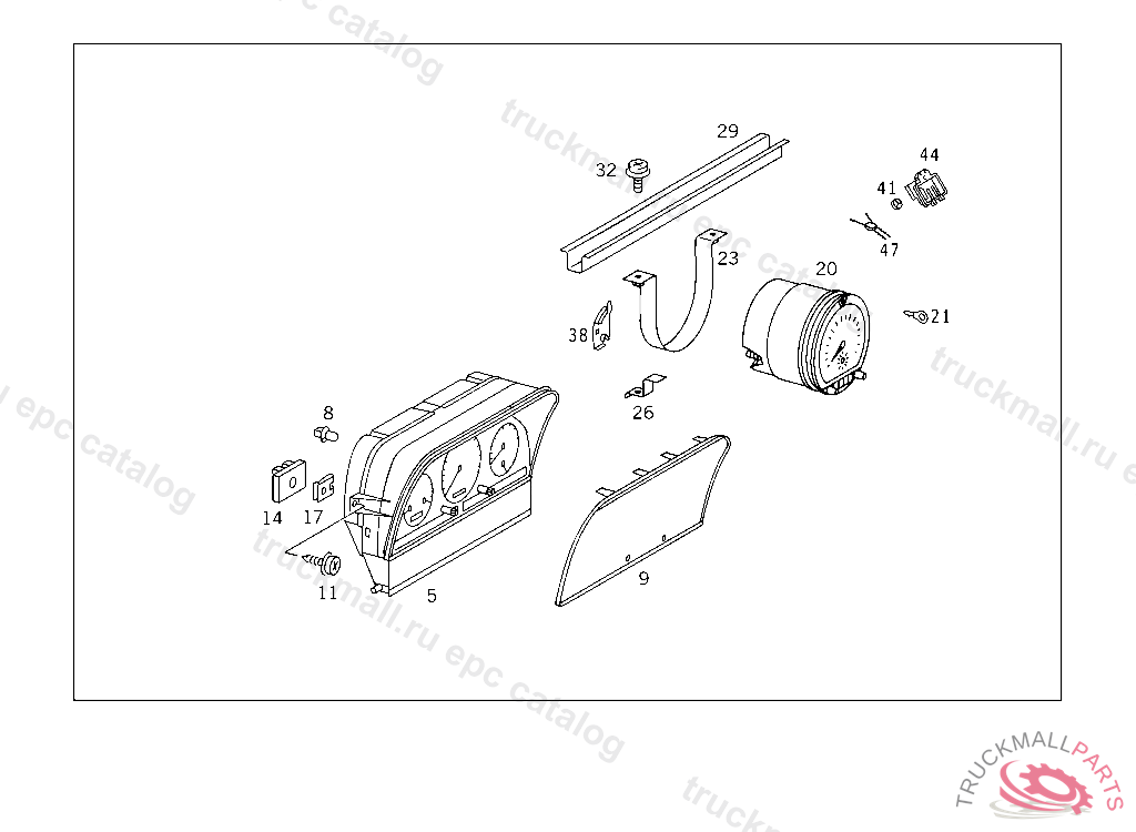 INSTRUMENT CLUSTER WITH TACHOMETER WITHOUT OUTBOARD TEMPERATURE INDICATOR OM601/602 (KM/H)