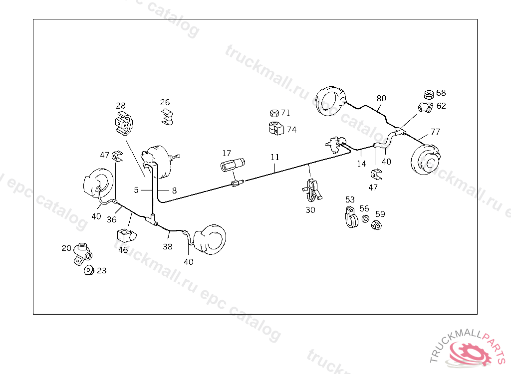 LINE FROM MASTER CYLINDER TO FRONT RIGHT BRAKE HOSE, INAPPLICABLE TO ANTI-LOCK BRAKING SYSTEM (ABS)