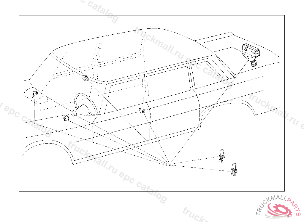 OUTFIT (LOCK,KEY,HANDLE) , 12 FROM CHASSIS 000332, 22 FROM CHASSIS 000929 UP TO CHASSIS 001704 EXCEPT FOR 001695,001700,001702,001703