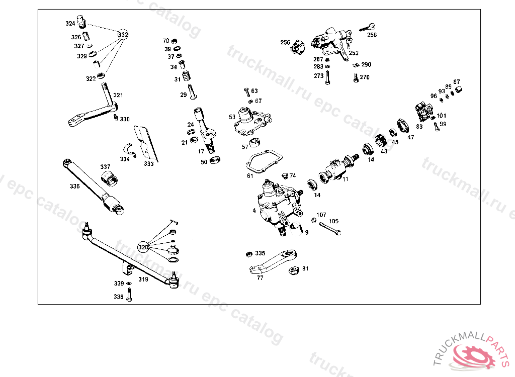 STEERING WORM WITH STEERING NUT, 20/60 UP TO CHASSIS 022038,FROM CHASSIS 022039-252864 SEE SPARE PARTS LIST 760.202,FROM CHASSIS 252865 SEE SPARE PARTS LIST 760.204