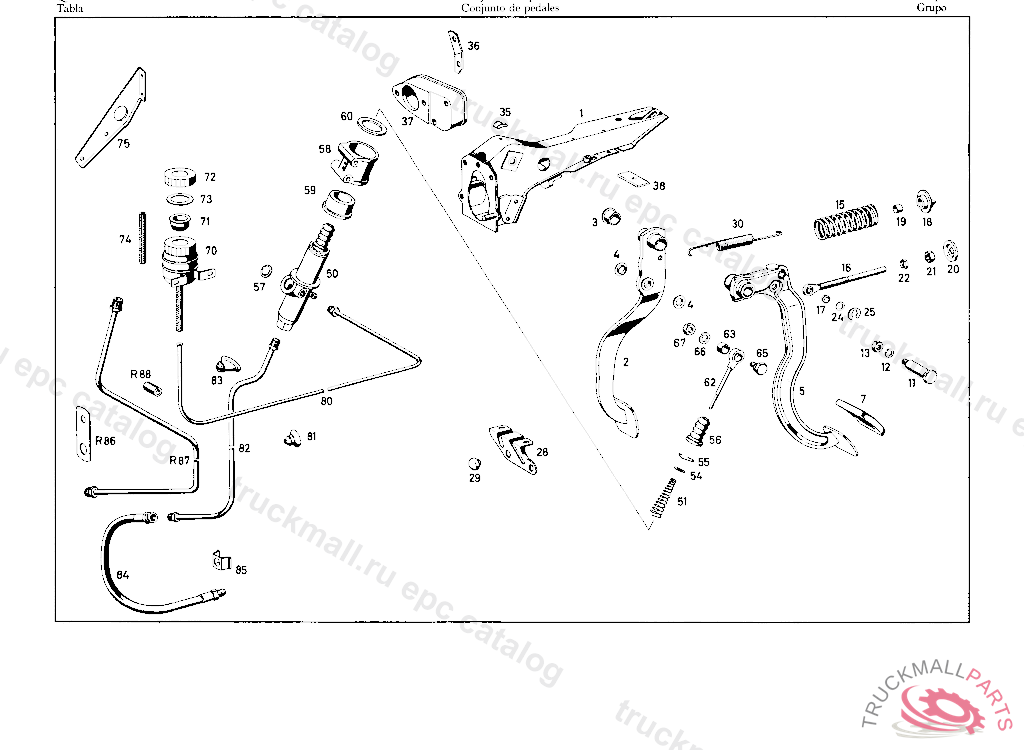CLUCH PEDAL. CLUTCH PEDAL , UP TO CHASSIS 004653 WITH THE EXCEPTION OF 003962, 004155, 004584, 004632 ALSO INSTALLED ON 004679, 004698