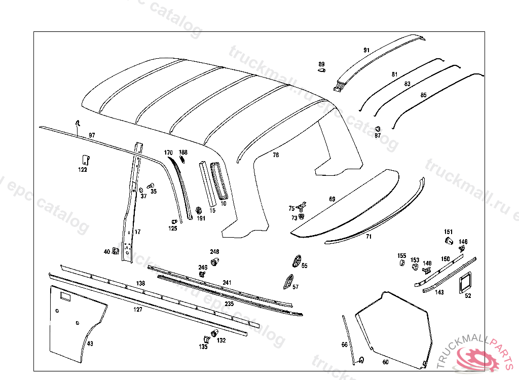 DRIP MOULDING RIGHT, FROM CHASSIS: 015 200001 110 400001 115 200001 005,017,105,107,108,117,119 000001