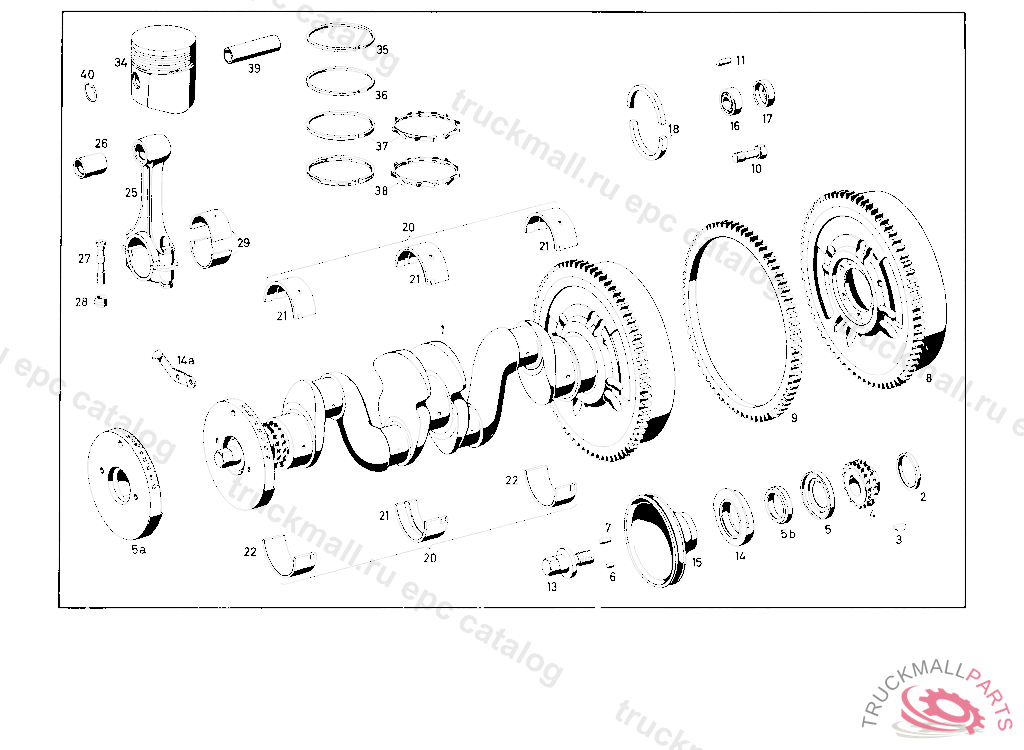 CRANKSHAFT WITH FLYWHEEL, COLLAR SCREW, CRANKSHAFT BEARING AND CONNECTING ROD BEARING SHELLS, MAKE LAUCHERTAL OPTIONAL