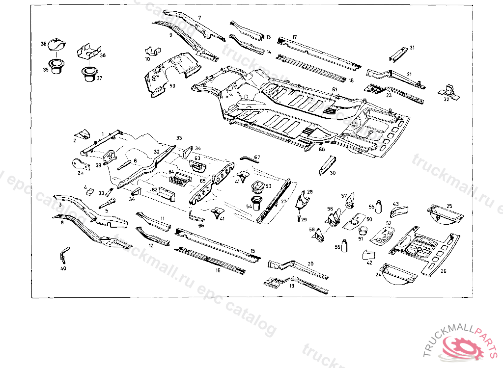 FLOOR, REAR FOR SINGLE-JOINT REAR AXLE UP TO CHASSIS NO. 55 12433 EXCEPT FOR 55 11783, 12143, 12215, WHEN MOUNTING, THE REAR FLOOR H, Replaced By: A101206100162