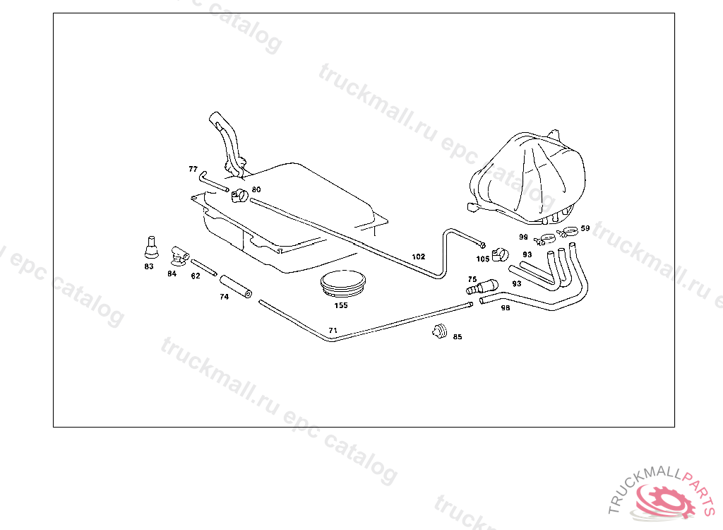 BREATHER PIPE FROM RESERVOIR TO VENT LINE FROM TANK, 000 098845 003 049444 007 042062 083 000290 086 000150 093 000121 102 079297 103 079274 105 099374 183 000405 190 000351