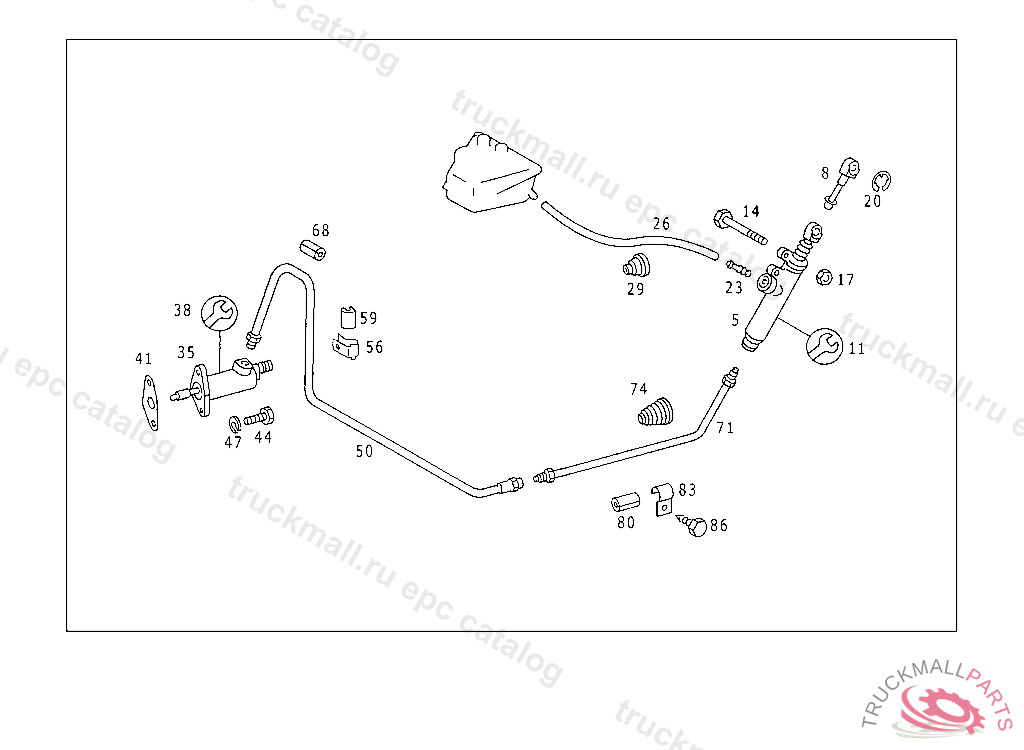 LINE FROM CLUTCH MASTER CYLINDER TO CLUTCH SLAVE CYLINDER, TO BE ADAPTED DURING ASSEMBLY