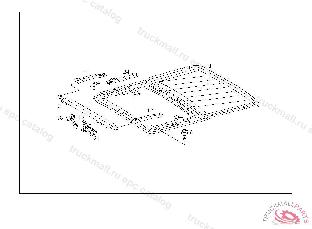 FRAME WITH DRAFT DEFLECTOR, DURING ASSEMBLY, BEND THE REAR BOW BRACKETS (4 PIECES) UPWARD