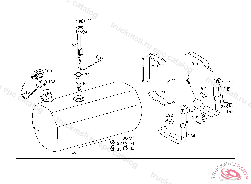 FUEL TANK , FIRST EXHAUST STOCK OF OLD PARTS UP TO IDENT NO. K 169122, Replaced By: A6524700101, +001A0005409917, +001A0115426017