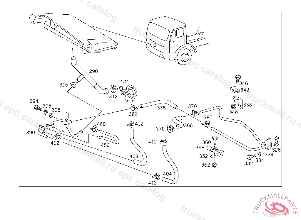 HOSE HEATER RETURN, FROM RADIATOR TO CAB HEATING PIPE