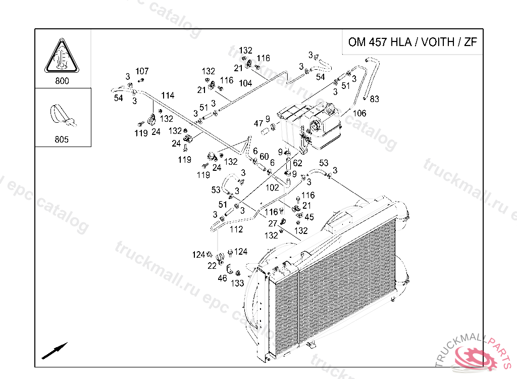 COOLANT LINE. LINE DE-AERATION PIPE TO RADIATOR