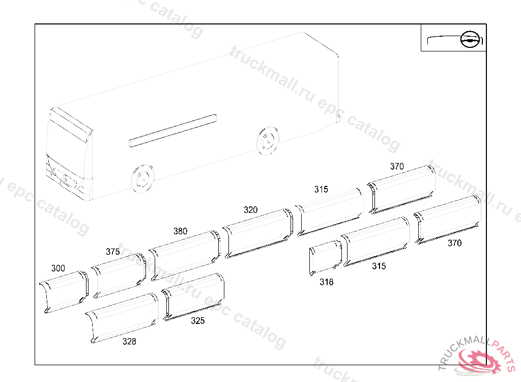 PANELLING RIGHT, BETWEEN THE AXLES 380 MM, .......I.......INR.7E87I.......I II