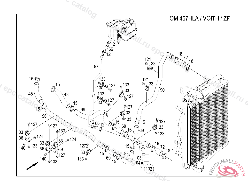 COOLING WATER PIPE FROM RADIATOR TO ENGINE