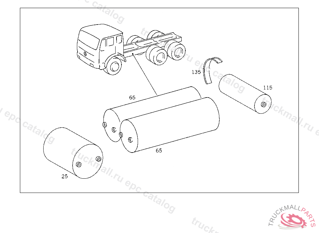 RESERVOIR20L, 276 MM, TO VOSS 232,5 934168 FOR VEHICLES WITH VOSS 230 CONNECTOR: ADD. MOUNT FITTING "A 004 997 82 72" WITH O-RING "A 000 987 04 46" AND THRUST RING "A 000 997 02 03" TO AIR RESERVOIR