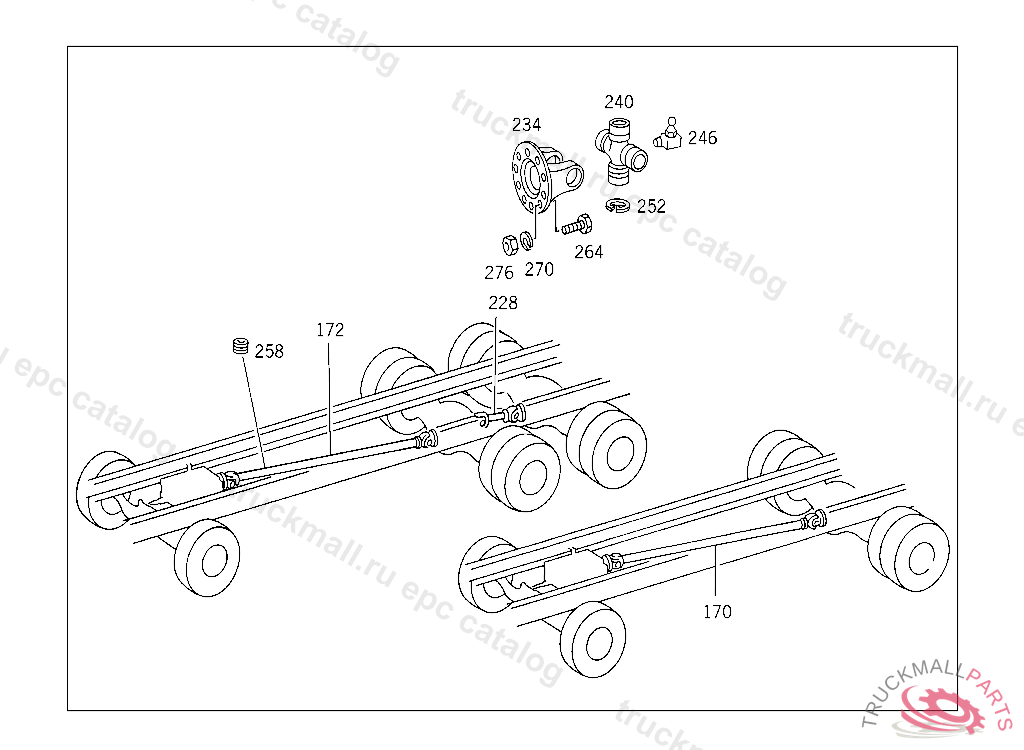 PROPELLER SHAFT FROM REAR AXLE I TO REAR AXLE II 780 MM, PART IS ONLY OR ALSO SUPPLIED AS RECONDITIONED PART