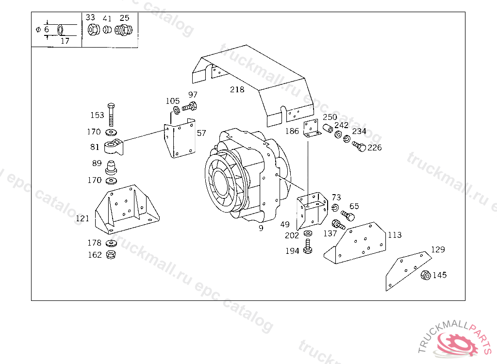 RUBBER MOUNTING TELMA BRAKE TO SUPPORT ON SIDE MEMBER