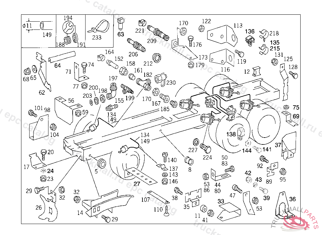 HOSE FRONT AND REAR AXLE BRAKE CYLINDERS 11 MM