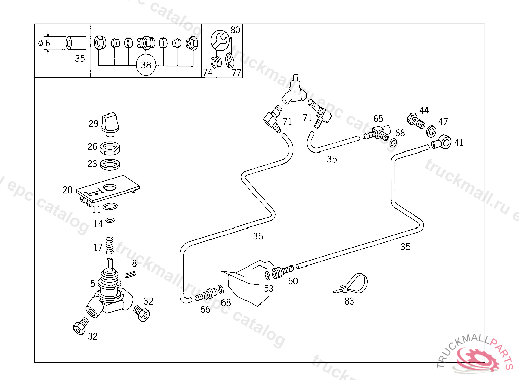 SCREW DELIVERY AND SUCTION LINES TO ENGINE, FRONT M 6X35