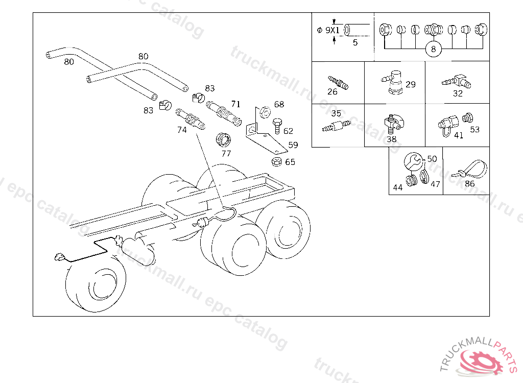 T-FITTING REAR AXLE II TRISTOP CYLINDER, CONNECTIONS: "11,12,22"