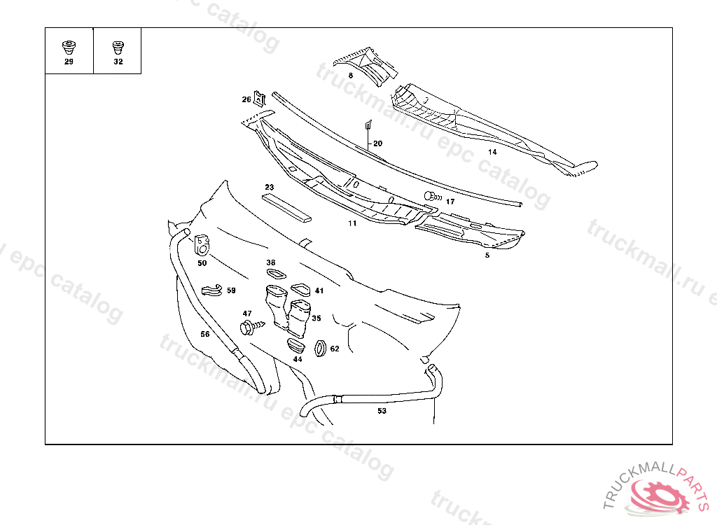 CLIP COVERING TO INSIDE CENTRAL PART BELOW WINDSHIELD