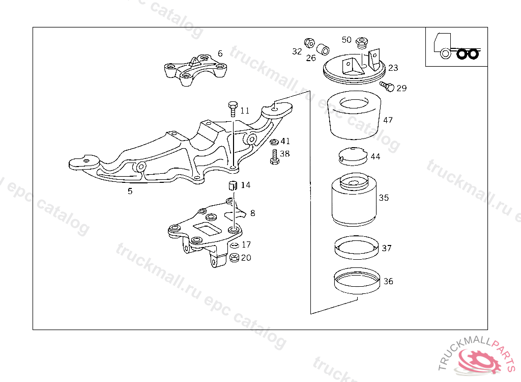 SPHERICAL WASHER AIR-SPRING-BELLOWS SUPPORT TO REAR AXLE