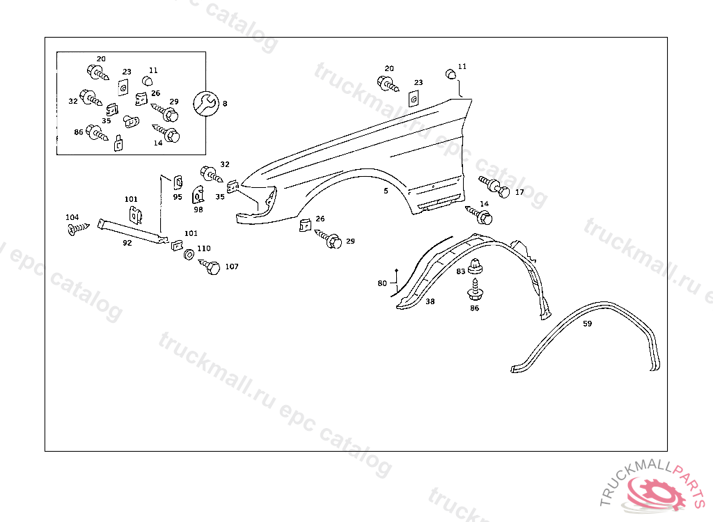 SCREW PARTITION PANEL TO FRONT FENDER, 003 109847 007 098846 086 007461 093 010729 102,103 304111 105 266568 183 019766 190 024811 193 007801 200 082947 280 003503 283 008887