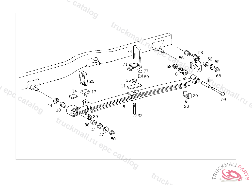 REAR SPRING , TO WHEELBASE 3150 MM ,WITH EXHAUST IN FRONT OF REAR AXLE ,REWORK IF NECESSARY. USE U-BOLT + GUIDE PLATE + FITTED SCREW AS REQUIRED (SEE GROUP 32 ,VARIO) ONLY REPLACEABLE BY PAIRS, Replaced By: A6673203306, +002A6703200175, +004A6673516425